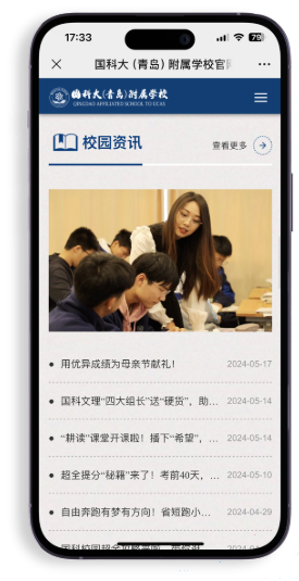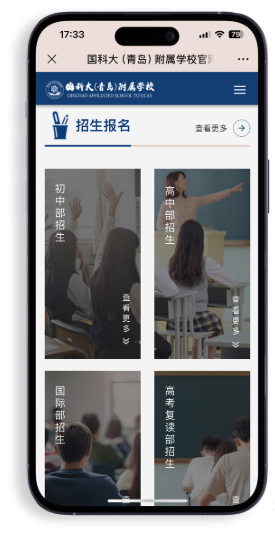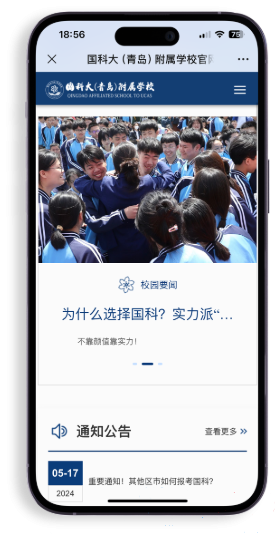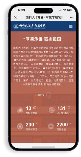 國科大(青島)附屬學校是中國科學院大學與青島市城陽區人民政府聯合創辦的國有民辦非營利高中學校。學校位于青島市門戶、北部副中心的城陽區白云山片區,舉辦方為國科健康科技小鎮公司。總占地面積131畝,總投資13億元,設有高中部、國際課程中心、高考復讀部,現有教職工230余人,學生近2200余人。